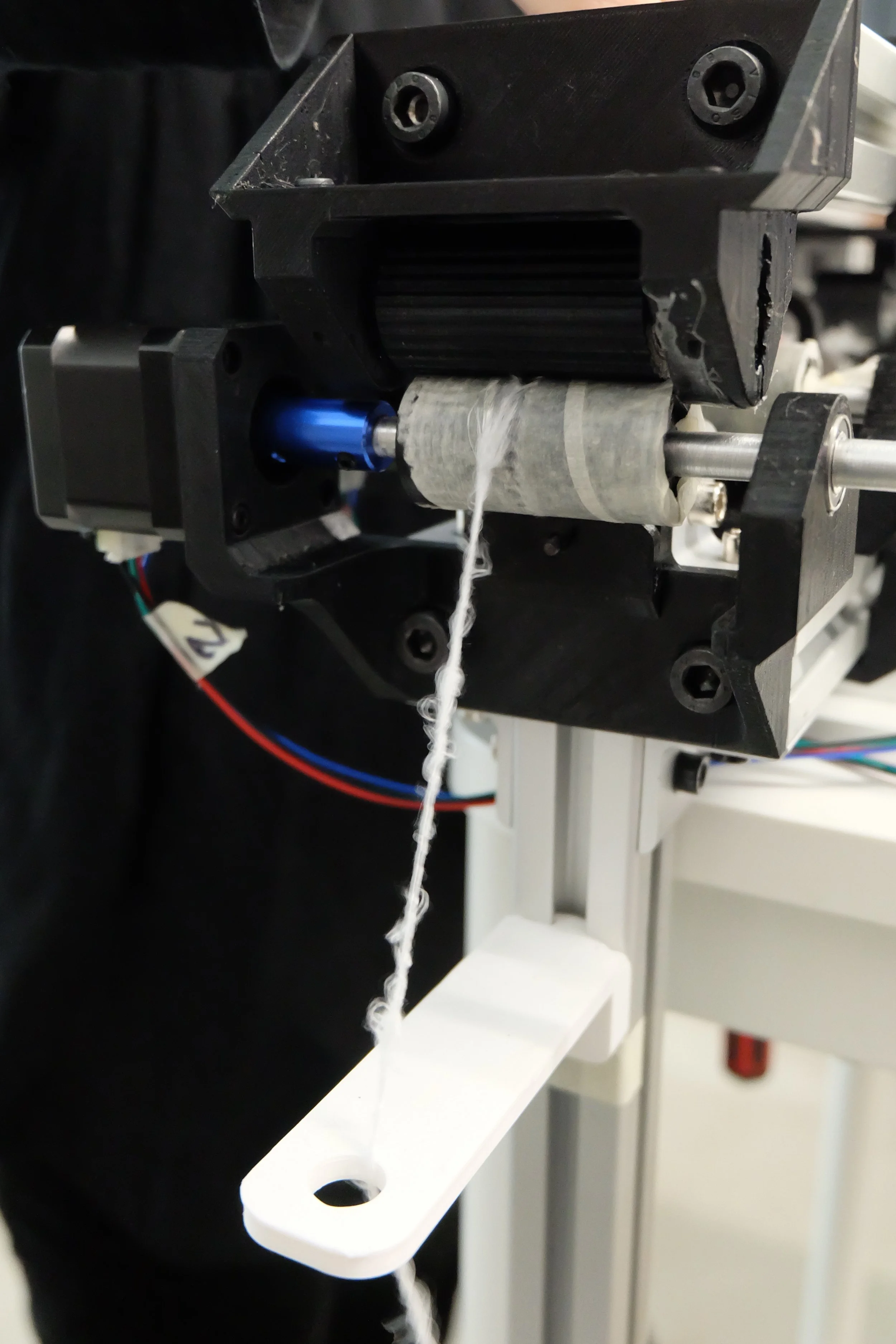 The research phase included a collaboration with Studio Pluis (NL) for felting trials, and Studio HiLo (DE) and Saxion Hogeschool (NL) for re-spinning of the yarn waste. Research on re-melting of the waste for 3d-printing is currently ongoing.
