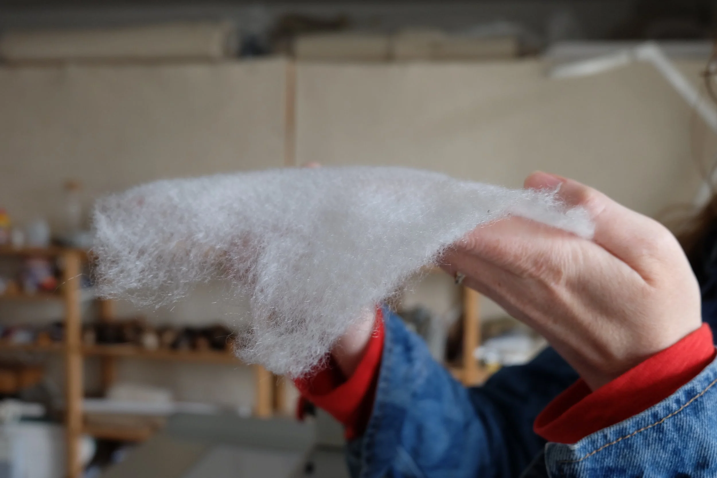 To Weave or Not to Weave included a collaboration with Sanne Muiser, creative researcher at Studio Pluis, who contributed expertise and equipment on felting techniques for the development of non-woven textiles. Additionally, the woven path was informed by a previous spinning training at Studio HiLo in Berlin.